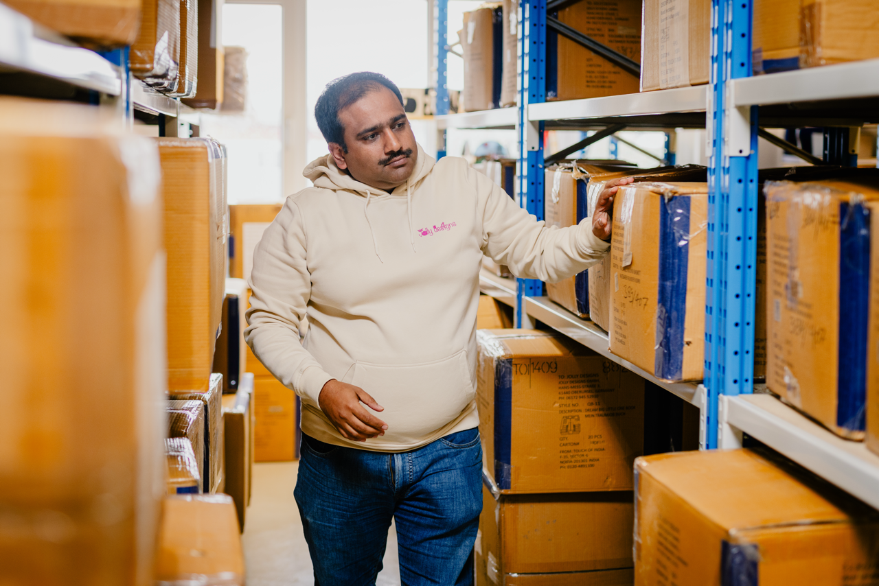 avec Iris et Shweta, il complète notre équipe d'entrepôt. Jairo veille à l'ordre dans l'entrepôt et aide assidûment à l'emballage de vos paquets. Lors des grandes livraisons de notre production, il met toujours la main à la pâte et apporte la bonne humeur dans nos entrepôts.
