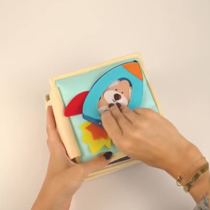 Handgefertigt aus robusten, OEKO-TEX® zertifizierten Materialien, ist das Buch weich, langlebig und 100 % kindersicher. Kompakt und vielseitig begleitet es neugierige Köpfe zuhause wie unterwegs – für fantasievolle Spielmomente jederzeit.