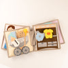 Der Preis kommt zustande, da jedes Buch, Stück für Stück in Handarbeit gefertigt ist – z. B. jede Naht, jedes Teil ist einzeln vernäht. Die Bücher unterliegen strengen Qualitätskontrollen, um sicher für kleine Hände zu sein. Sie sind zeitlos, beständig, hochwertig und stehen Jahre an intensiven Spiel stand. Ihr Wert bleibt dabei beständig. Die Bücher sind extrem zeitaufwändig und kompliziert im Herstellungsprozess.
